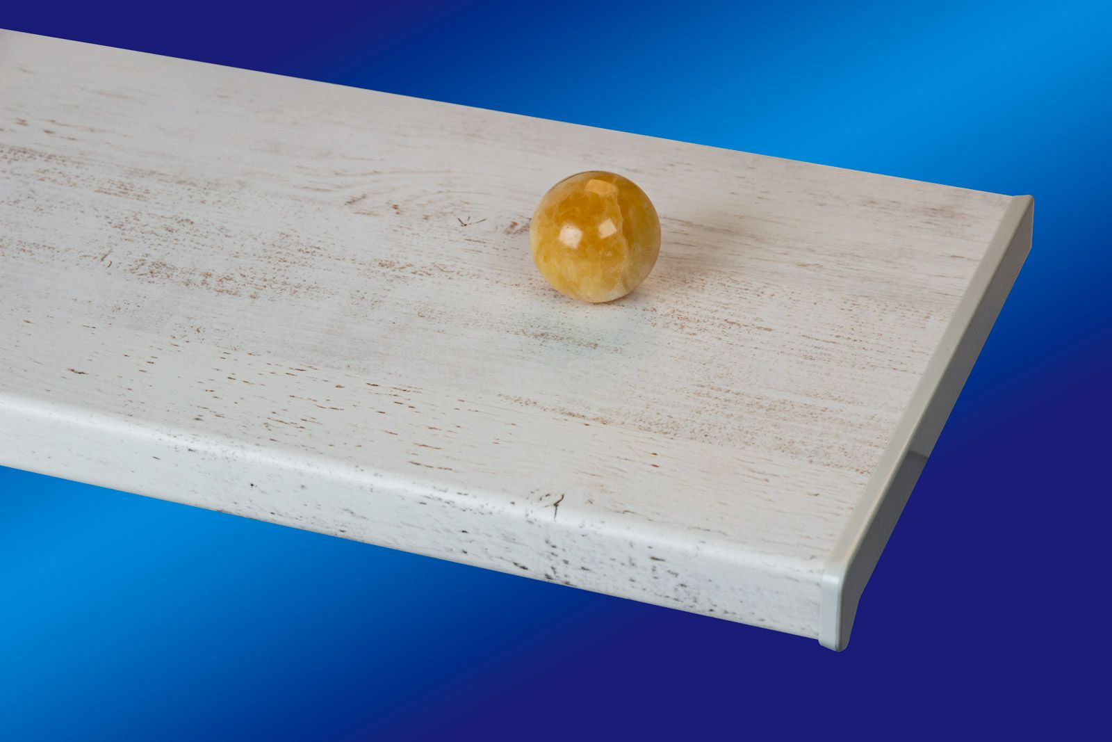 Цвет "белый ручей" разработан для цветных композитных подоконников Möller с матовой поверхностью шириной от 100 до 850 мм. Рисунок напоминает структуру струганной деревянной доски, покрытой белой эмалью и обработанной мелкой наждачной бумагой: более светлые полосы, обозначающие кольцевые волокна, как бы размыты и смазаны  в ходе обработки. Полную достоверность прикосновения к дереву создает структурированный рельеф лицевой стороны, который формируется в процессе экструзии панелей.